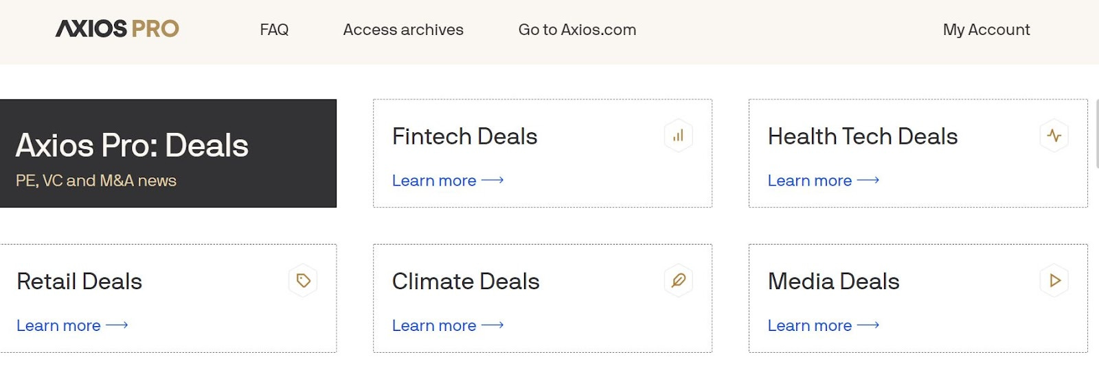 뉴욕타임스에 따르면 콕스 엔터프라이즈는 악시오스 성장에 2,500만 달러(326억 원)의 현금을 투자할 계획입니다. 이 자금으로 반데헤이는 악시오스 프로(Axios Pro) 등 구독 기반 버티컬 미디어를 더욱 확장시킬 생각을 가지고 있는 것으로 알려졌습니다. 악시오스 프로는 미디어, 헬스테크, 핀테크 등의 산업에 대한 전문 뉴스를 뉴스레터로 전달해주는 서비스로 연간 구독 가격이 평균 140달러를 넘습니다.